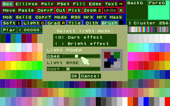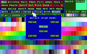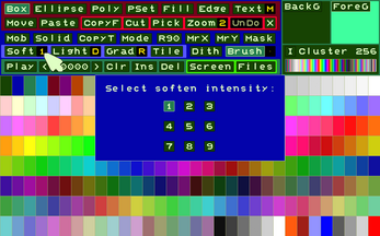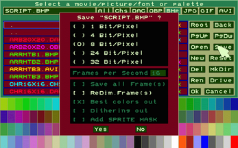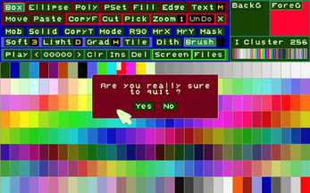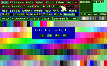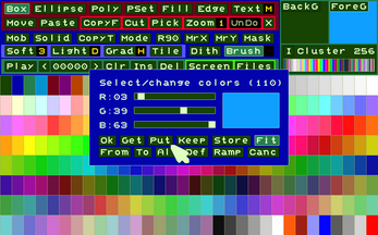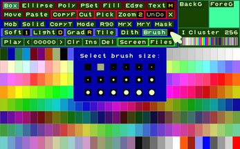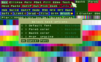 Even today, for data management, it is possible to use recently published retro-style tools with a simplified appearance and convenient functions; often with greater ease of use. In work offices, post offices and other situations, the human-machine interface involves greater use of the keyboard and a textual display of available functions, rather than through non-memorable icons or buttons. From this concept was born this interface that allows you to create/edit/save/open images/animations/character sets and color palettes.