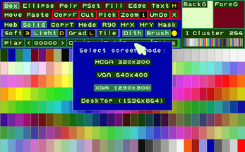 I'm not a very good graphic designer, but, when I have to animate sprites, or generate cartoon-style presentation films, I need a similar product, which as far as I know, having been developed for VESA-VGA graphics cards and 16-bit CPUs (80386+ real mode), does not work on modern computers.